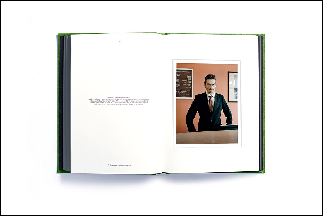 While I was checking out of the Campanile Hotel in Leicester during my journey around England, I noticed Rob Brown’s powerful pose at the reception desk. I cautiously asked if I could take his picture. He agreed, he stayed in the same pose and position throughout the process of me setting up my cumbersome 5x4 camera. I took one frame, thanked him and proceeded to pack my kit away. He said nothing, he just continued with his day and proceeded to check-out the next customer.