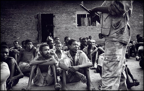 This picture shows northern prisoners of war being guarded by a soldier of the Sudanese People’s Liberation Army (SPLA).